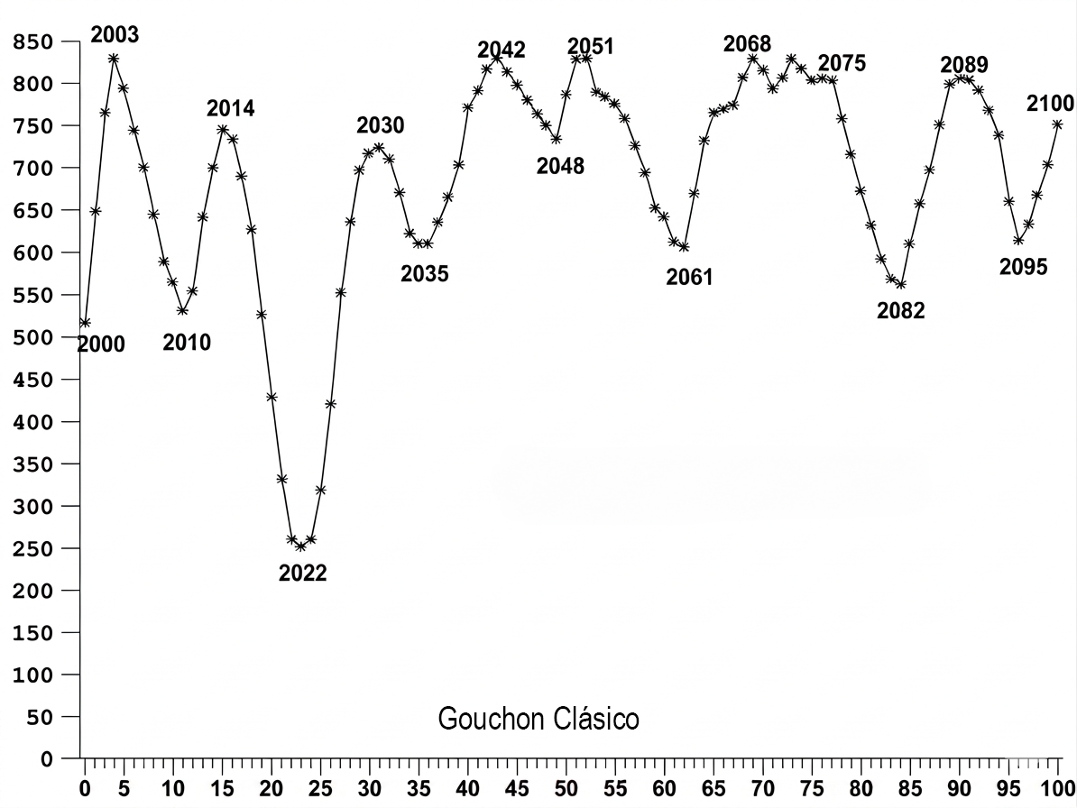 La idea no era nueva. La Astrología Mundial había trabajado desde siempre con las conjunciones y oposiciones de los planetas lentos como marcadores de crisis. Lo que Gouchon añadió fue la exigencia de sistematización: en lugar de observar un fenómeno cada vez, había que construir una medida continua.